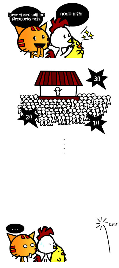 haha, so funny for the fireworks part, 1 bang only..hahah