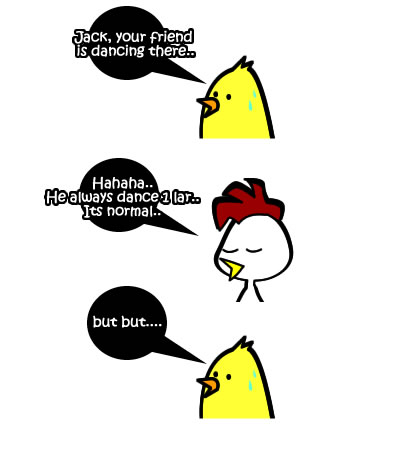 Reply: I did it for the comic strip XD LOL.. hahaha joking joking. Actually I did not really dancing like how it is show in the comic strip.. Was just nodding my head the beat.. And my friend’s gf started to say me siao
