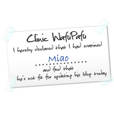 annantFebruary 21, 2009 at 9:11 am fai tit recuperate ar… miao comic is addictive… 😀 Reply: I also hope my sick go away Reply