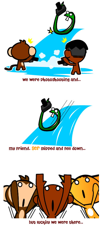 btw, Mr Ser didnt feel lucky because u guys saved his camera instead of him? haha, if i were mr ser i would thank my friend for saving my camera instead of me, hahaha!