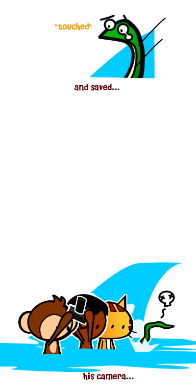 i would have saved the cam first too! i even told my fren, dont save me first if i drop into water, save my cam first. hehehe btw, the ah snake is so cute lah