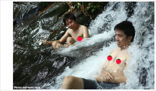 Few minutes later, the rain stopped and we walked happily to the waterfall (on top)…we took quite a lot pictures there. Suddenly…!!! My female friend slipped and banged her head on the rock! (There are so many rocks there..big size, small size, and some are sharp!)