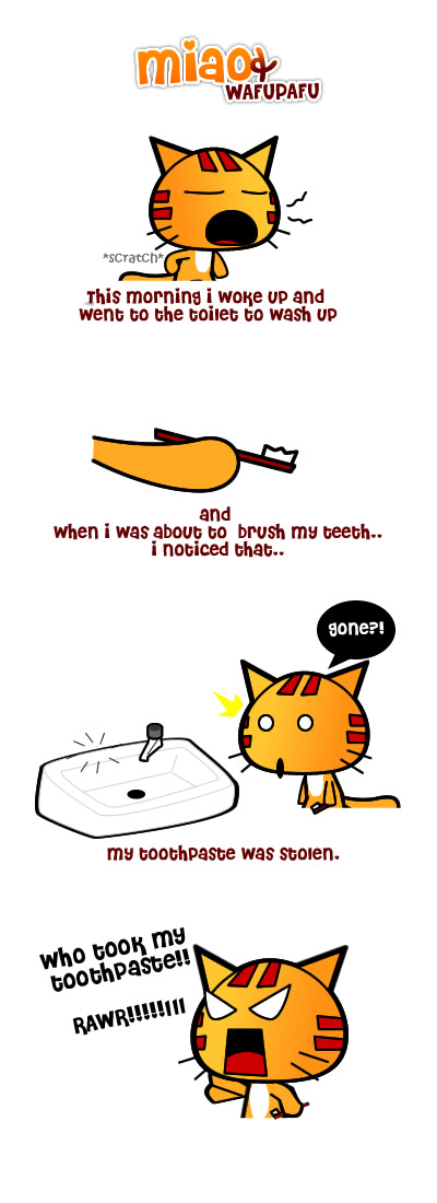 15. Haha… pityful miao. Next time, pour some glue on the toothpaste or put some wasabi into the toothpaste. Give the thief a lesson.