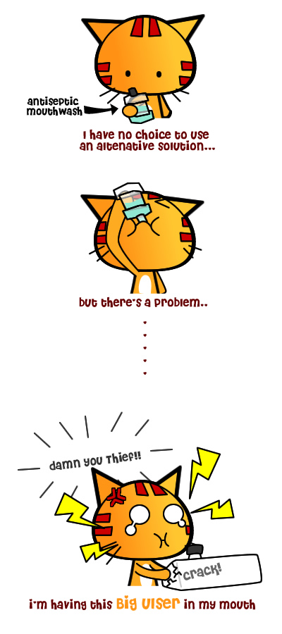 14. Ou..I dislike people touch my things without my permission. Me no-likey. Try to buy the ulser treatment paste from pharmacy, guaranteed recover in a night. I also don’t have much interaction with my house mate for four months. Even we meet we just smile and walk away doing our own things. o.O