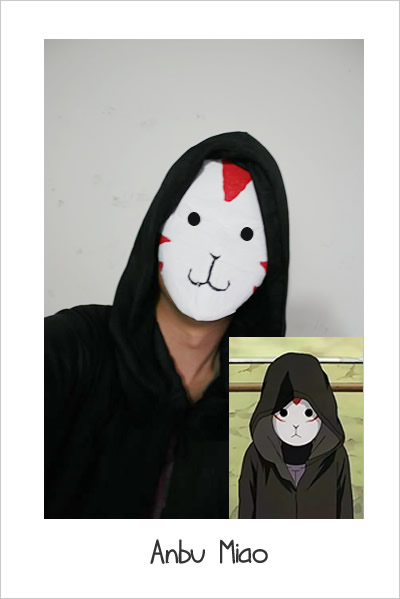 Pei Fu you!!!! like that also you thought of using the cat as an ANBU mask!!!! geng… no need to feel weaken by theirs ba… make some fake explosion tag, buy the kunai (can be bought everywhere) and paste some paper smoke bombs!!!