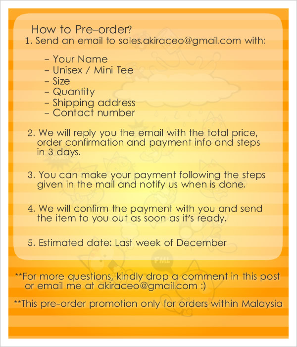“As international shipping is too expensive, the pre-order promotion with free shipment is offer to my fellow readers staying in Malaysia only. For Singaporean readers who is still interest to pre-order, you may email me at akiraceo@gmail.com.”